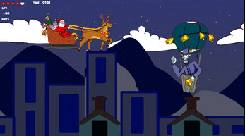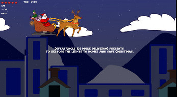 Help Santa deliver presents and restore the lights, dodging the bells thrown by Uncle Ice and using your powers to defeat him.